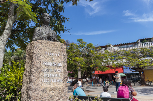A Praça Pedro Bruno homenageia o artista paquetaense Pedro Bruno (1888-1949), que se destacou na pintura, paisagismo e poesia, tendo a ilha como inspiração. Foi fundador da Liga Artística de Paquetá, responsável por valorizar e preservar o patrimônio cultural e ambiental local. Suas obras são tombadas e expostas também em museus, como o Museu da República e Museu Histórico Nacional.