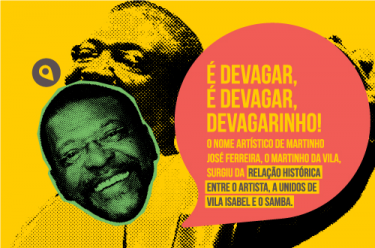 Martinho José Ferreira’s stage name, Martinho da Vila, came from the historical relationship between the artist, the samba school Unidos de Vila Isabel and samba. Involved in the school’s plots, he made the samba Kizomba , “A Festa da Raça”, and granted Vila Isabel the title of Carnival champion of the special group of samba schools in 1988, a fact that would repeat itself in 2009 and 2013.