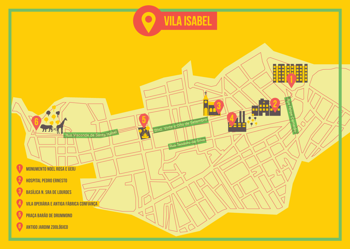 The region of Vila Isabel is a microcosm of Rio de Janeiro: all trends mingle with attempts to build a carioca tradition that has been reinventing itself throughout the last century: samba, poetry, France and Brazil, the university, the land of the laborer, Mangueira and Morro dos Macacos. It was one of the areas of the former Engenho Velho, which spread its limits from the city center up until the regions of Engenho Novo and Lins. After the work of Barão de Drummond, it became the first planned neighborhood of the city, in 1872. The town still has a spell without farofa : it joins its musical sidewalks with the energy of the students (there, in Vila Isabel, whoever is a graduate is not afraid of the expert ), and the traditions and renewal of communities that belong to Vila Isabel. The neighborhood is worth visiting, no matter whether you are an intellectual, a trickster, an expert or just a curious person. It is a neighborhood with the name of a princess and a soul that reveals the purest of carioca’s mixture.