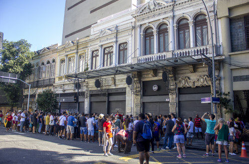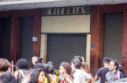 Located in the Rivoli Building, an art deco style model, it made up the landscape of the surroundings of Piazza Floriano when it opened in 1942. Like most cinemas in the area, it was built under a building that could be occupied by commercial activities and / or apartments. It belonged to the Severiano Ribeiro Group and exhibited pornographic films in its last years, until finally closing doors in 1993. It was abandoned until 2012, when a major renovation installed the Livraria Cultura there. The restoration preserved original elements of the cinema, such as the black and white floor, the balcony, the box office, the façade and the marble and granite coverings, as well as this beautiful bronze panel. It is currently out of service after the bookstore closure.